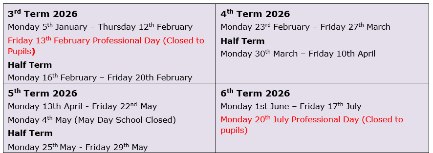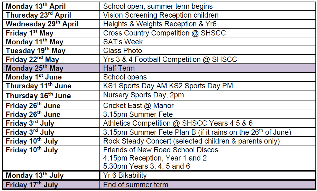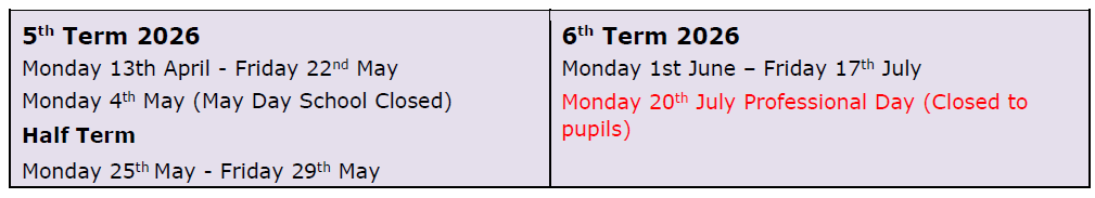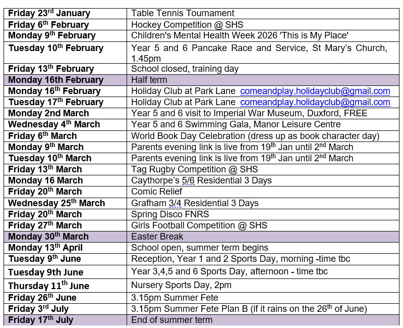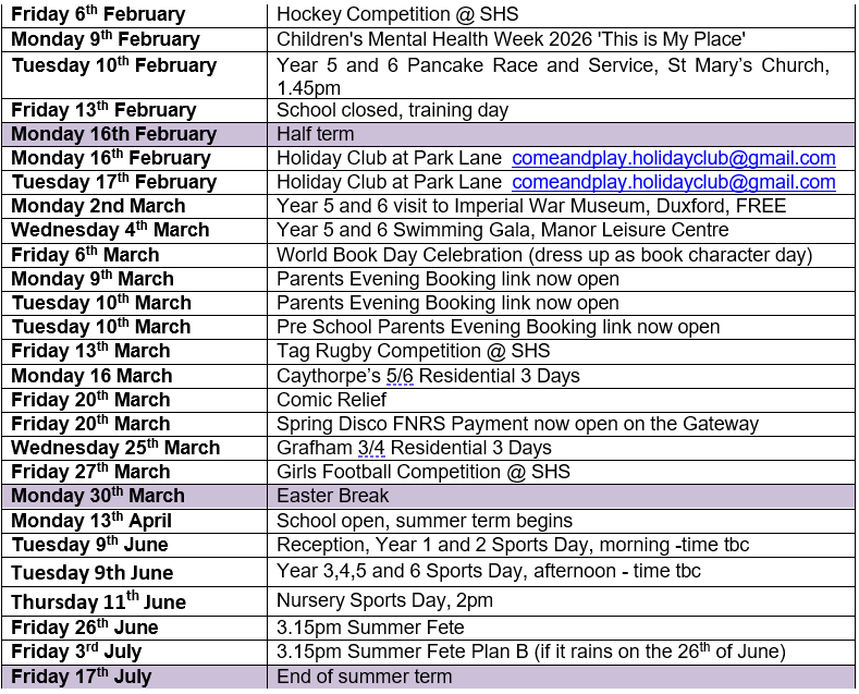 An up-to-date list of future term dates is below. Thank you for supporting our school we are proud of your children and all they achieve.