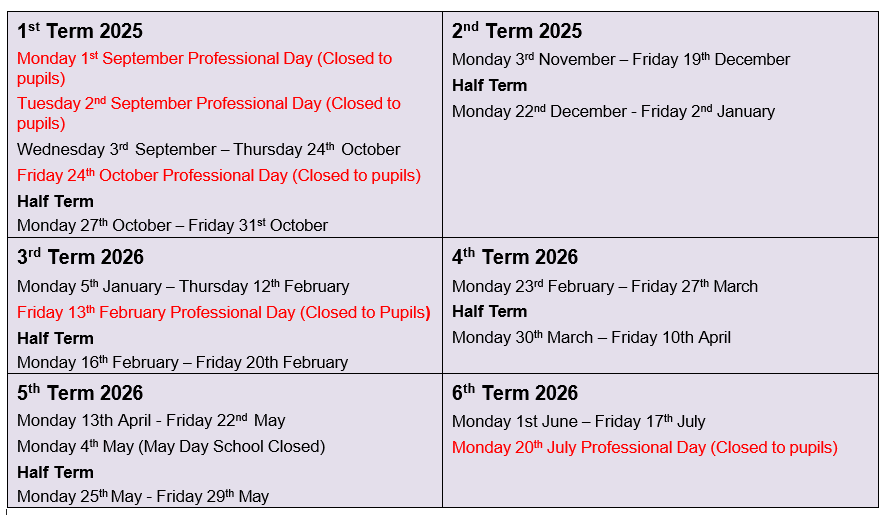 Term Dates 25/26