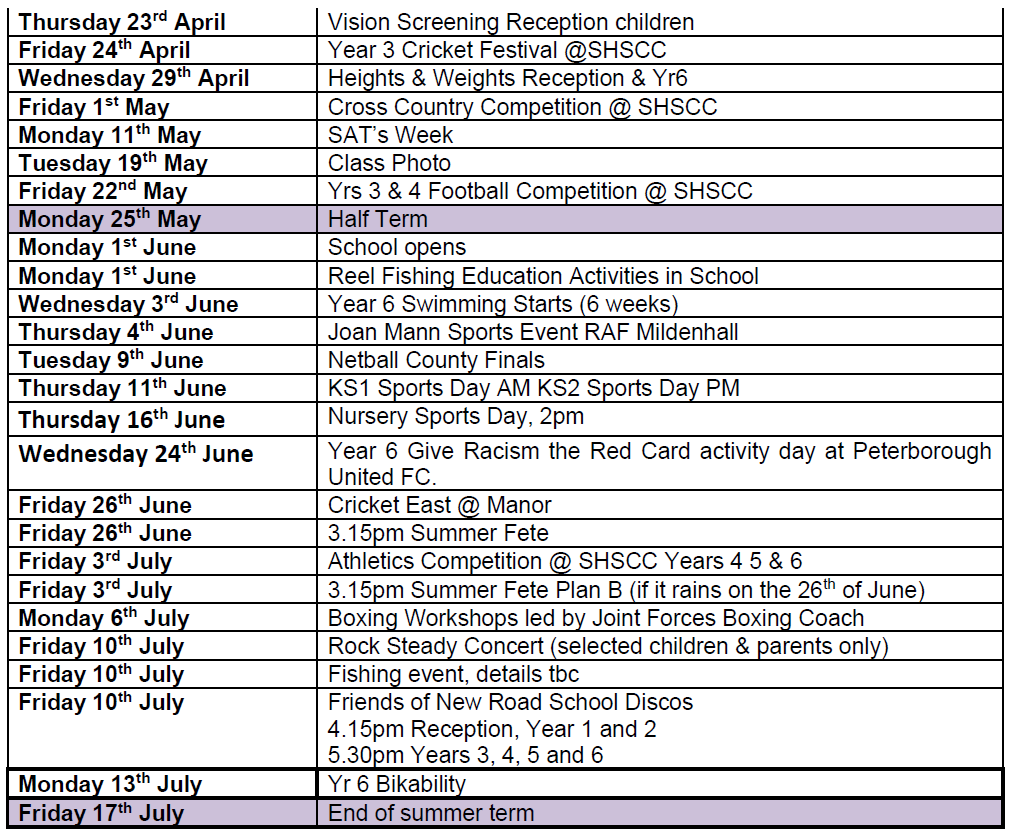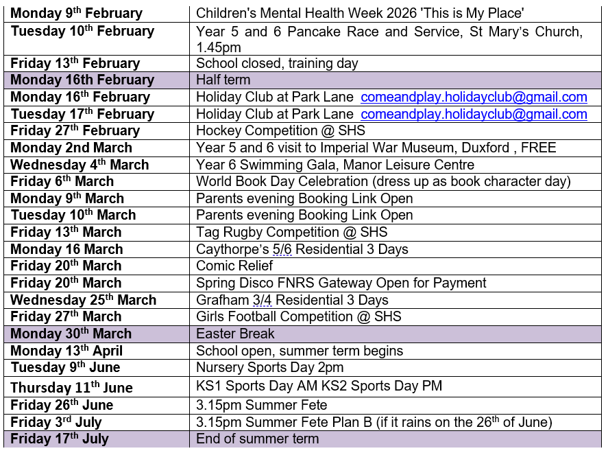 An up-to-date list of future term dates is below. Thank you for supporting our school we are proud of your children and all they achieve.