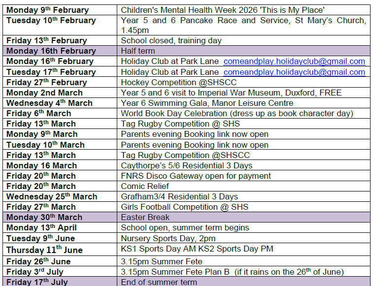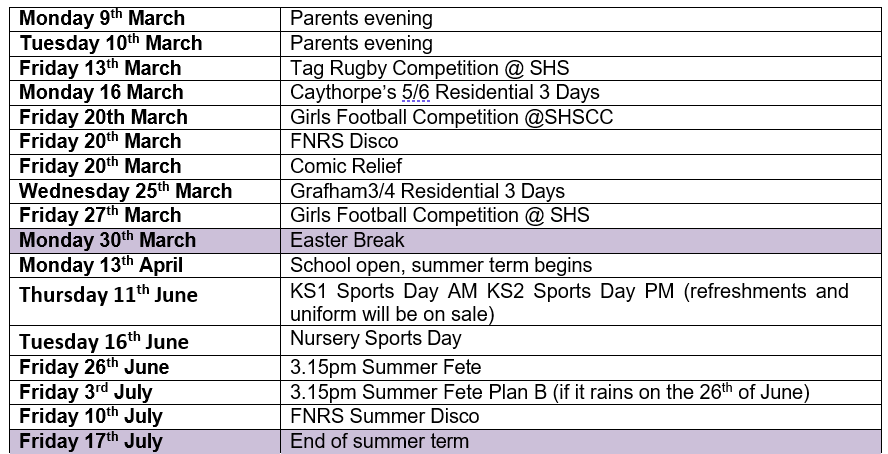 An up-to-date list of future term dates is below. Thank you for supporting our school we are proud of your children and all they achieve.